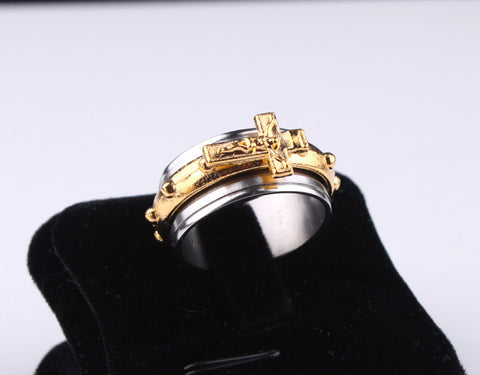 Titanium Steel 18K Silver Gold Plated Jesus Cross Ring