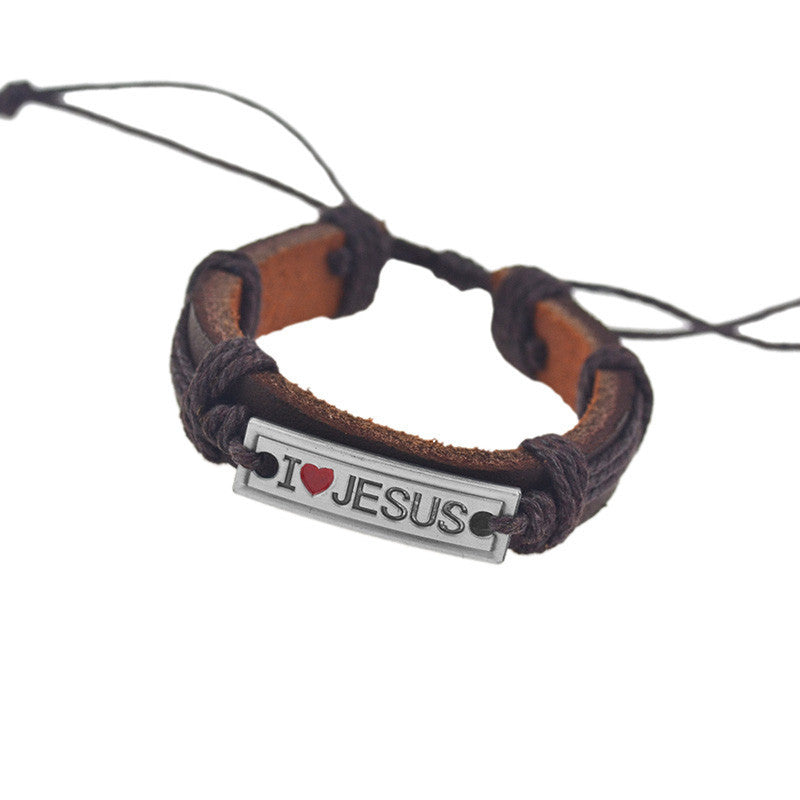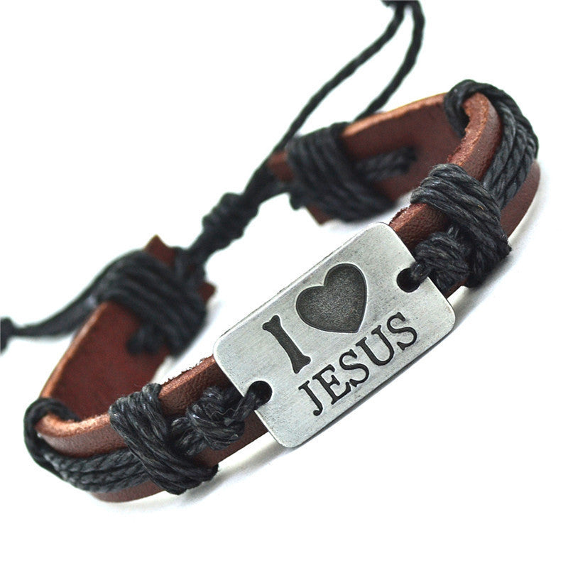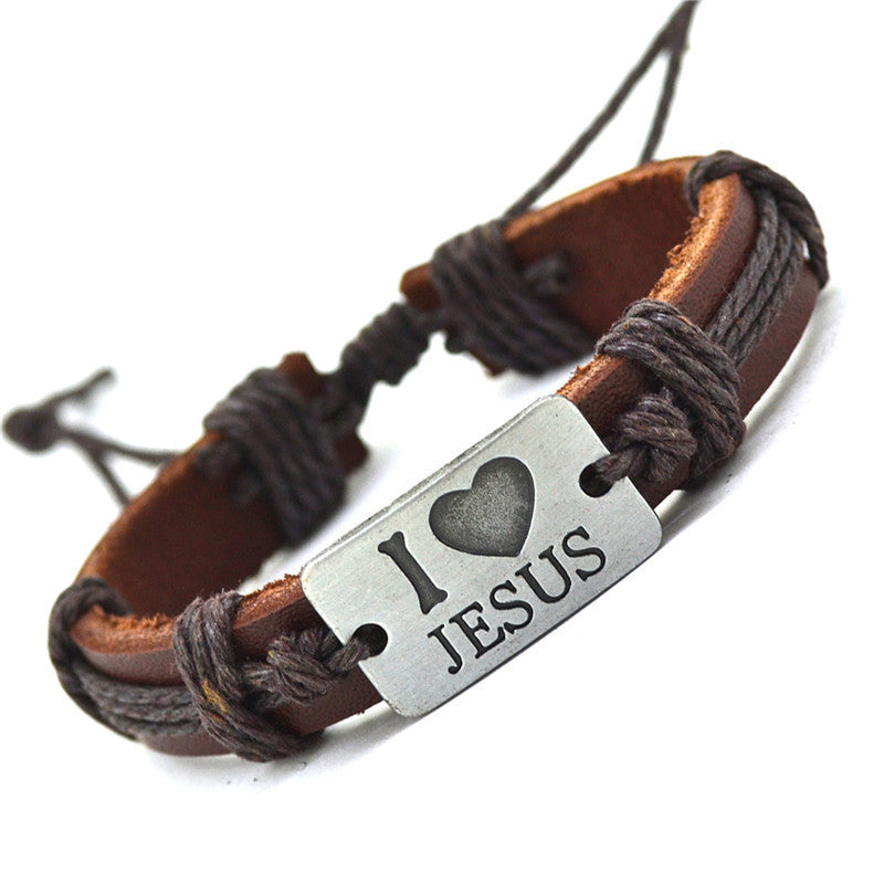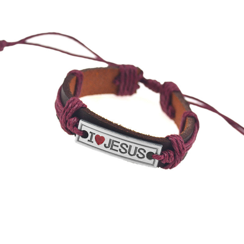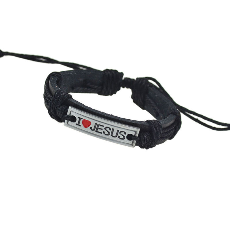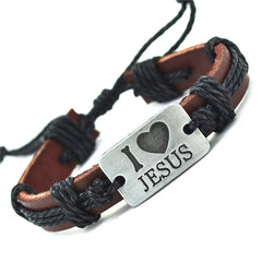 "I Love Jesus" Unisex Leather Bracelet